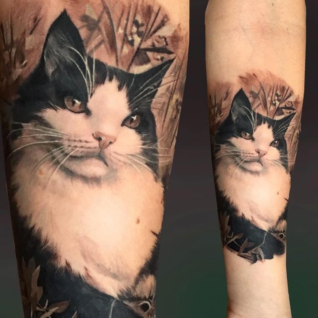 Realistic Cat Tattoo on Arm by Matteo Pasqualin