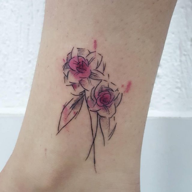 An animal skull with lace beads and feathers becomes a feminine tattoo design by Dodie