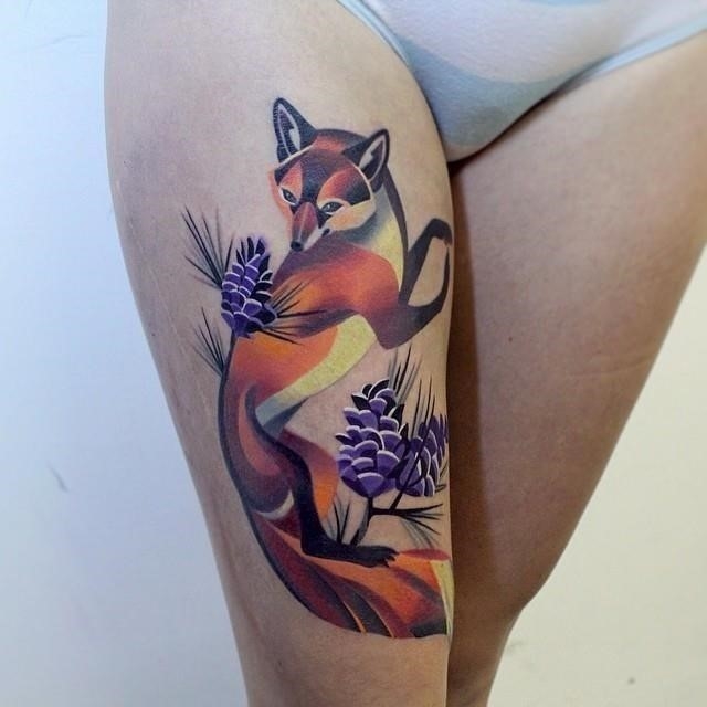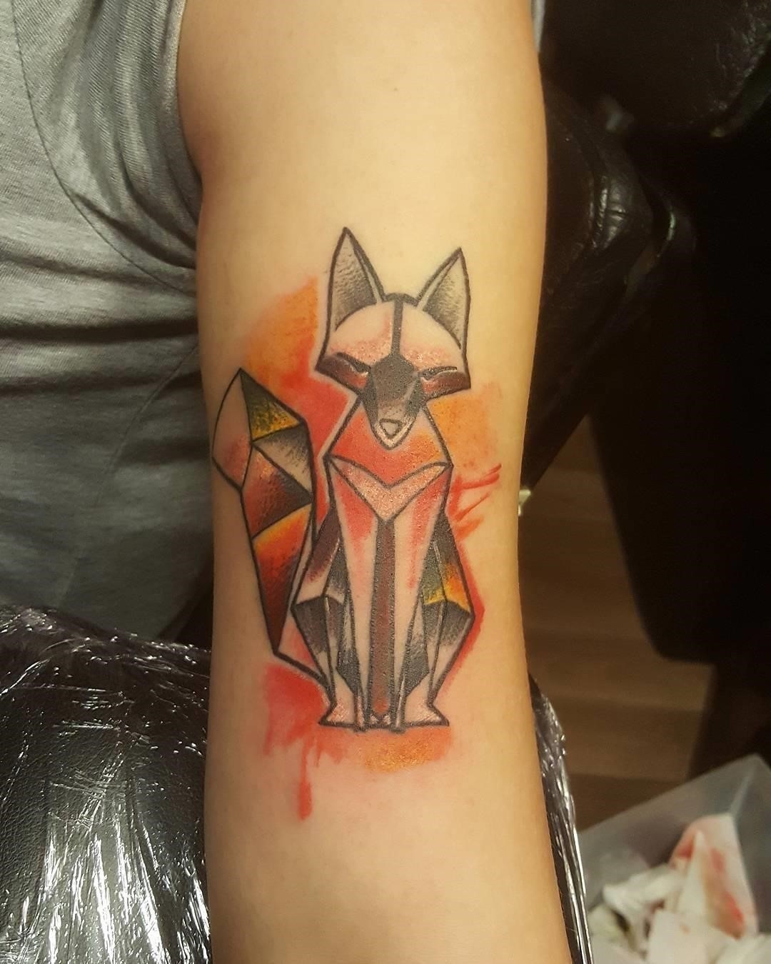 Hungarian tattoo artist Csiga creates a peaceful and artistic animal portrait of a fox in this nature tattoo