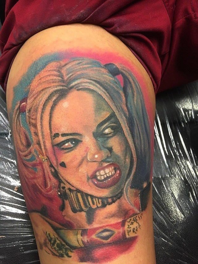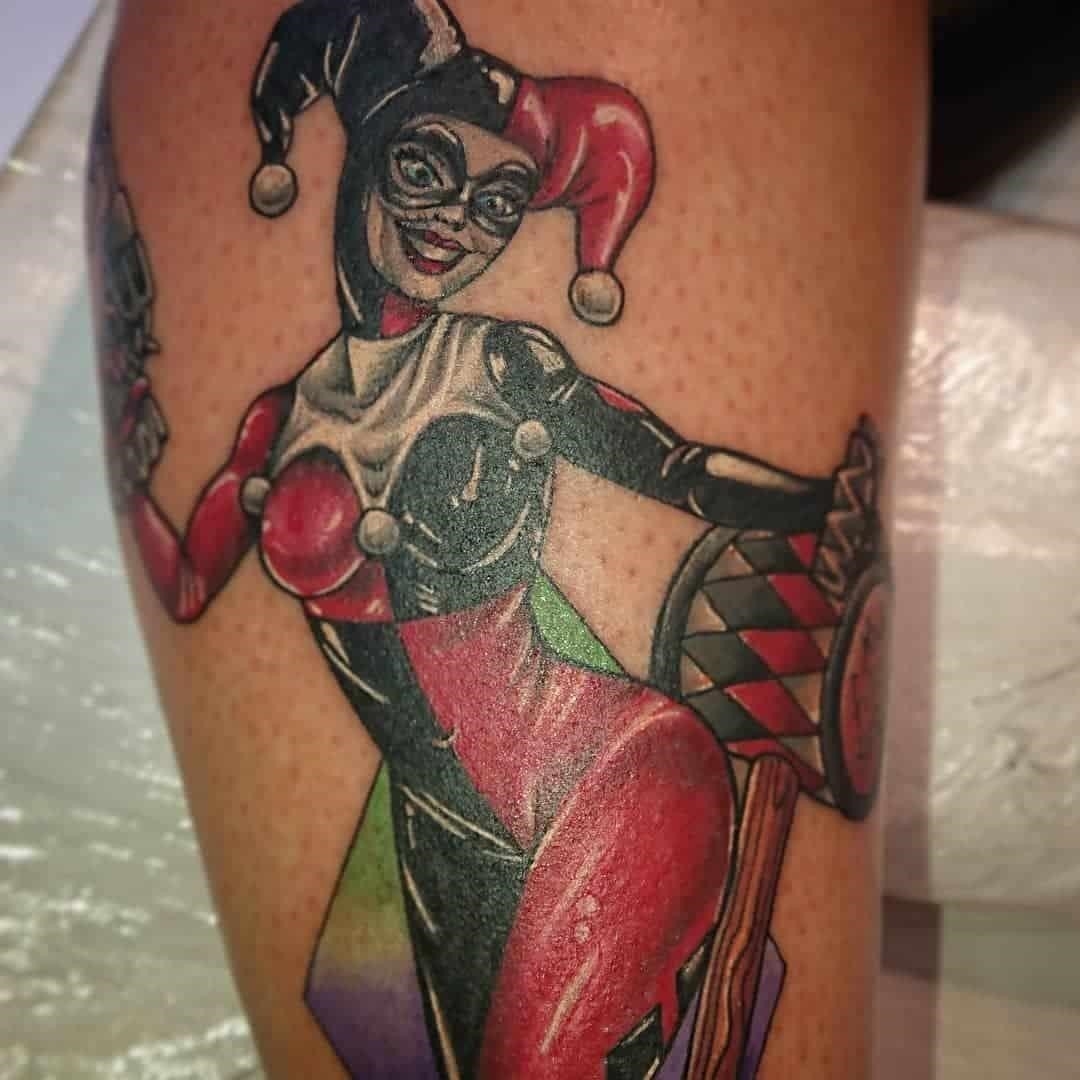 Harley Quinn Tattoo on Thigh by Andrew Smith 1 728×728