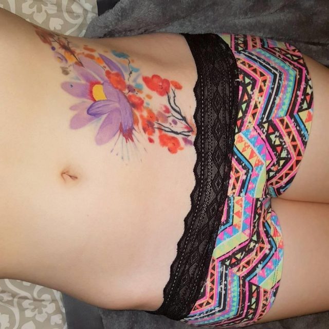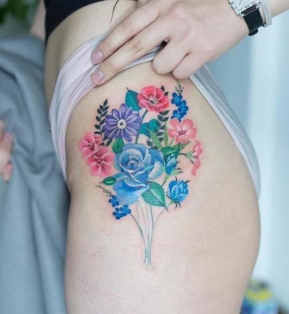 Watercolor Flower Hip Tattoo Idea