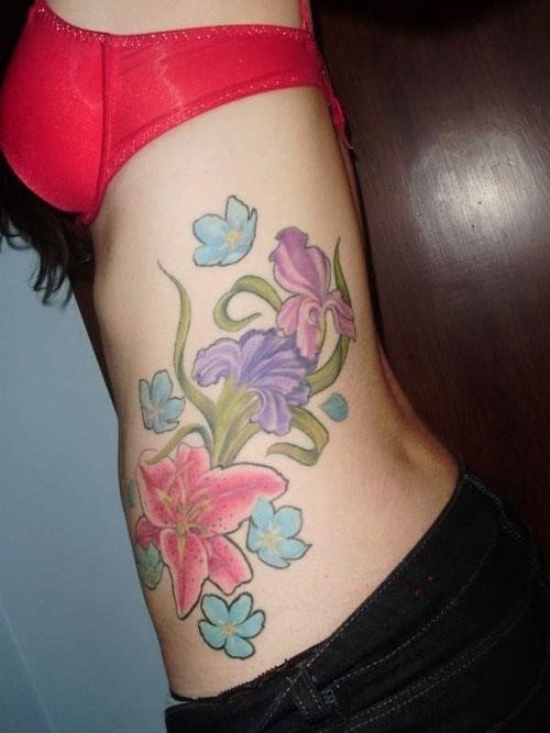 Tribal Flower And Irish Knot Tattoos On Side Of Rib